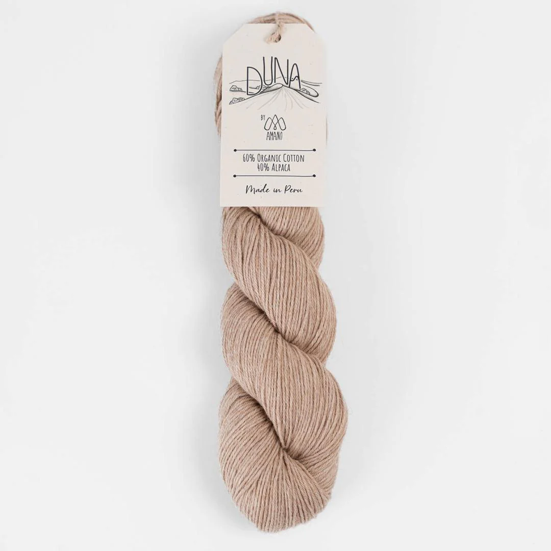 Włóczka Duna marki Amano łączy 60% bawełny organicznej z 40% alpaki, tworząc miękką, lekką i wyjątkowo elegancką przędzę. Naturalne odcienie bawełny i subtelne niuanse alpaki w wersji niebarwionej przywołują spokój peruwiańskich nadmorskich wydm, nadając każdemu projektowi organiczny charakter.